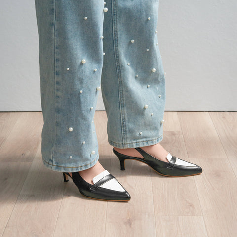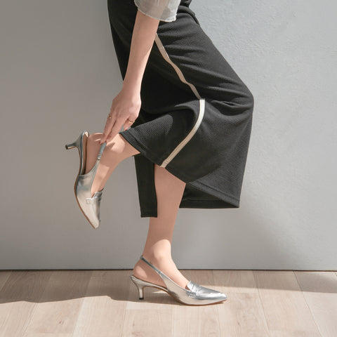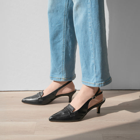 A pair of mannish loafers with an elegant finish, featuring a 5cm heel and pointed toe. A low heel that is easy to wear daily and a beautiful item.